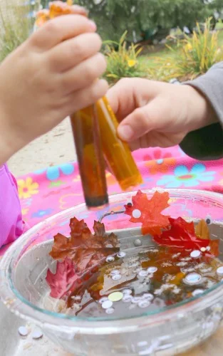 My kids never turn down getting to play around water! Engage in sensory fun with this simple Halloween inspired sensory soup activity!